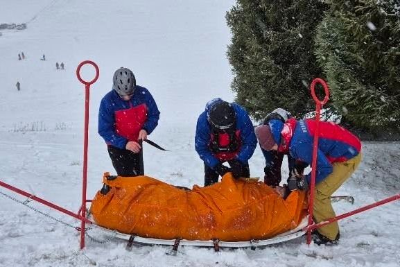 Am Samstag übten wir auf der heimischen Piste die Versorgung von Wintersportlern im Gelände. Dabei ging es um die Versorgung und dem Abtransport mit Akja und unserem ATV.