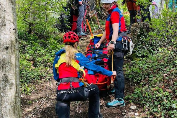 Am Samstag (03.06.23) erreichte die Bergwacht Stuttgart die Einsatzmeldung „gestürzte Person am Bahnhöfle“. Aufgrund einer Übung am nahegelegenen Reußenstein trafen wir bereits nach wenigen Minuten am Einsatzort an. Dort fanden wir eine im steilen Waldgelände gestürzte Person vor, welche sich aufgrund der Sturzlänge von ca. 15m mittelschwere Verletzungen zuzog. Nach medizinischer Versorgung durch unsere Notärztin konnten wir den Patienten in der Gebirgstrage auf den Wanderpfad aufziehen.