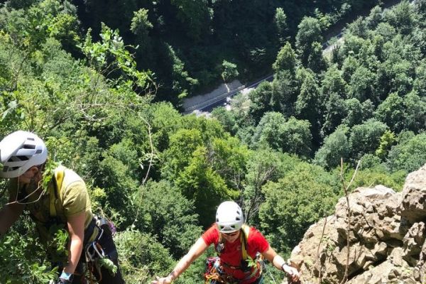 Am Sonntag (10.09.23) erreichte die Bergwacht Stuttgart die Einsatzmeldung „Person in Bergnot am Bahnhöfle“. Eine Wanderin hatte sich auf dem Weg zum Wanderparkplatz Bahnhöfle im Steilgelände des Albtraufs verstiegen und kam aus eigener Kraft weder vor noch zurück. Die eintreffenden Kräfte der Bergwacht Stuttgart konnten die unverletzte Wanderin gegen Absturz sichern und seilgestützt ca. 60 m bis zum Wanderweg nach oben transportieren.