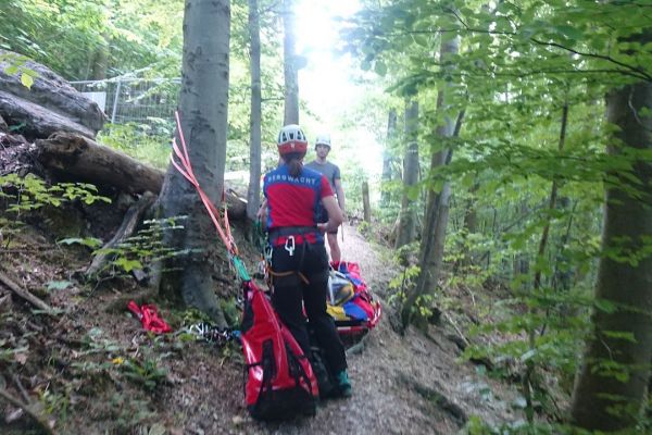 Aufgrund des schwer zugänglichen Weges wurde der Patient anschließend bis zum Bahnhöfle weiter transportiert und dort dem Rettungsdienst übergeben.